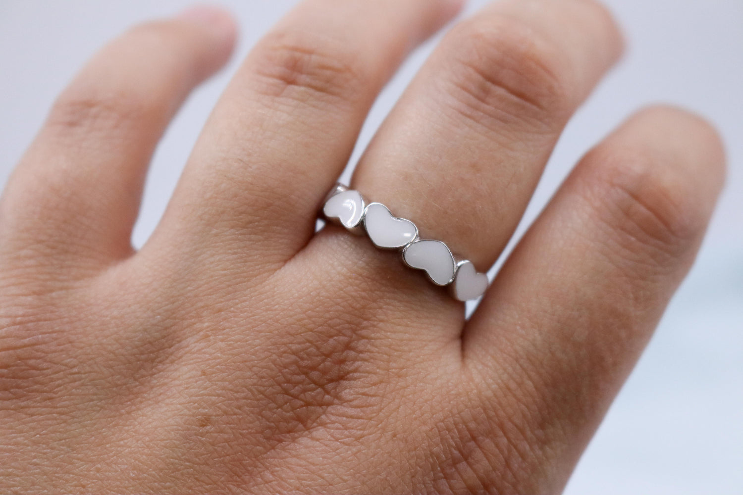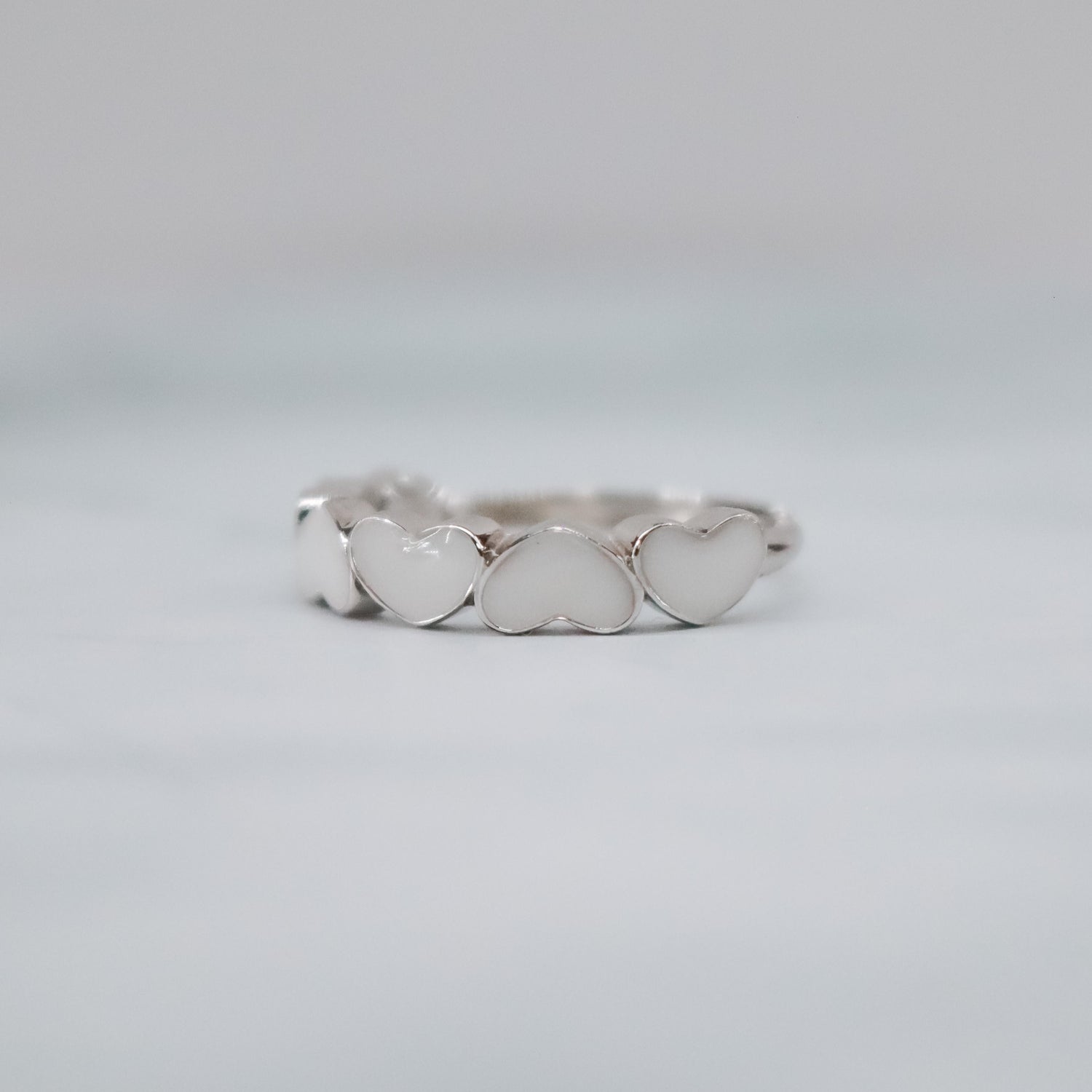 Dahlia is a breastmilk ring featuring a continuous row of heart-shaped stones created from your preserved breast milk. Available in .925 sterling silver or rose gold finish, this keepsake band combines a classic heart design with your breastmilk.